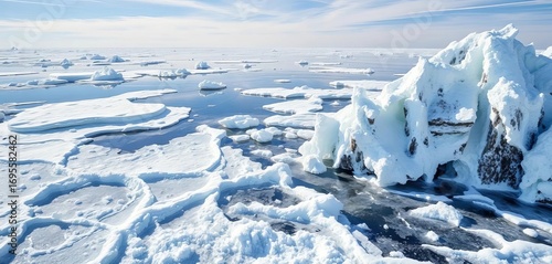 © Prisana, Obraz premium Jagged, icy formations on a frozen lake surface, texture, rough texture