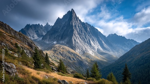 Obraz premium Jagged peak dominates alpine valley