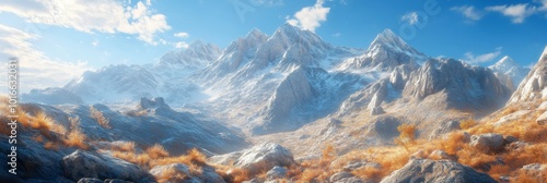 Obraz premium Jagged Rocky Mountain Peaks, rugged terrain with boulders, showcasing the raw...