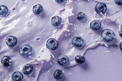 Fototapeta premium Jagody w jogurcie - świeżość i smak w pastelowych odcieniach