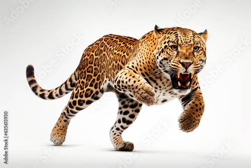 © Laser Eagle, Obraz premium Jaguar isolated on white background jumping. Animal front side portrait.