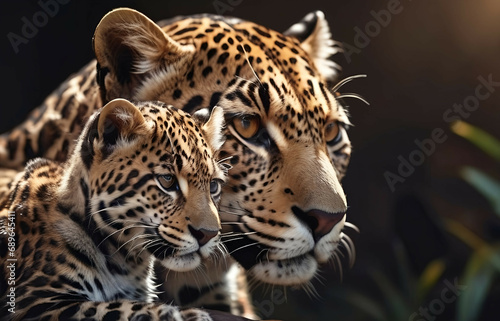 Obraz premium Jaguar Leopard family, cubs, love, photographic image with animals perfect...