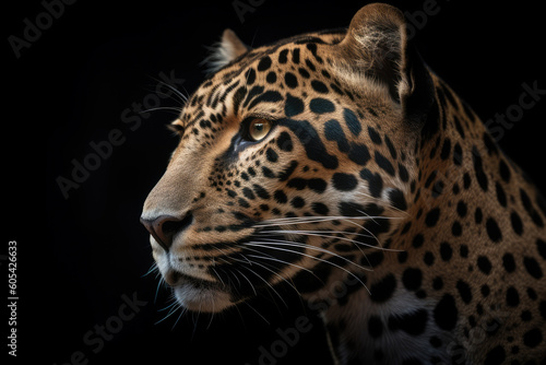 © Giovanna, Obraz premium Jaguar looking forward, black background, hyperrealistic photography, ai generated.