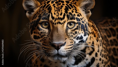 Naklejka premium Jaguar Portrait at Dusk Majestic Felid Basking in the Glowing Savannah with...