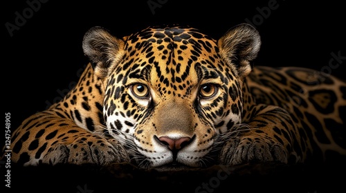 Obraz premium Jaguar portrait, resting, black background, wildlife, nature, conservation