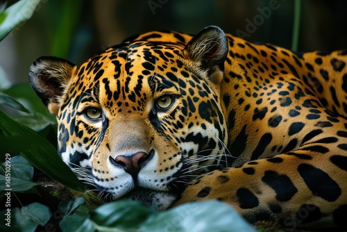 © Anna, Obraz premium Jaguar resting with intense gaze and rosettes