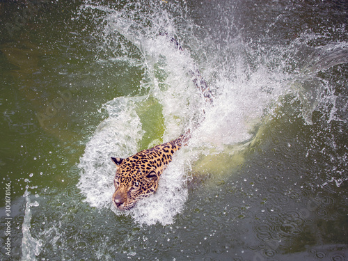 Obraz premium Jaguars are swimming in nature.