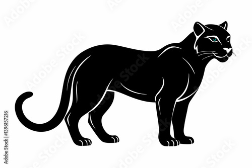 © kanchanrani, Obraz premium jaguarundi silhouette line art vector illustration