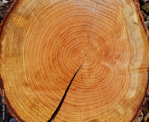 Naklejka premium Jahresringe; Baumscheibe; Fichte