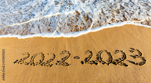 Fototapeta premium Jahreszahl 2022-2023 in den Sand geschrieben