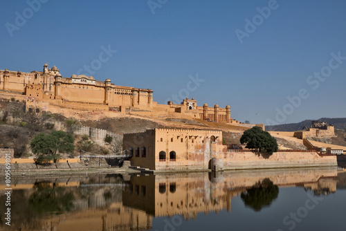 Obraz premium Jaipur, India: Amer Fort or Amber Fort. Amer Fort is known for its artistic style elements and is the principal tourist attraction in Jaipur.