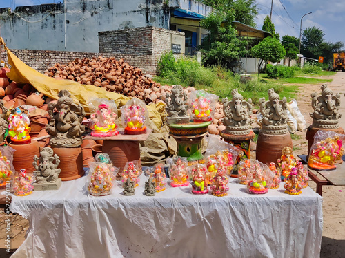 Fototapeta premium Jaipur, India Circa 2022: Picture of sculpture of Lord Ganesha. Outdoors daylight. Ganesh Chaturthi. Festival celebration
