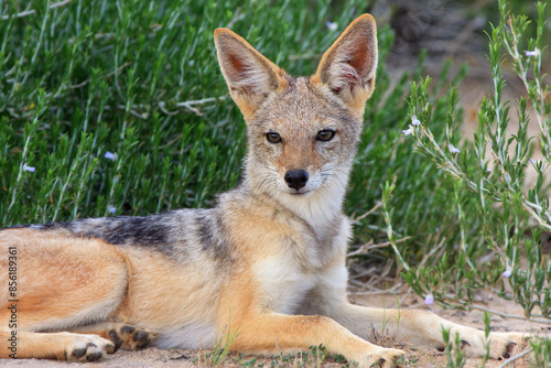© francescodemarco, Fototapeta premium jakal Kgalagadi Transfrontier Park one of the great parks of South Africa wildlife and hospitality in the Kalahari desert