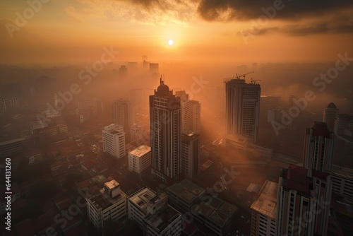 © Tor Gilje, Fototapeta premium Jakarta Indonesia centrum sunset in fog