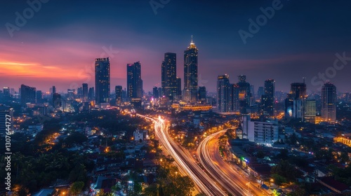 © amora™ studio, Fototapeta premium Jakarta skyline illuminated with fireworks during Independence Day celebrations at dusk