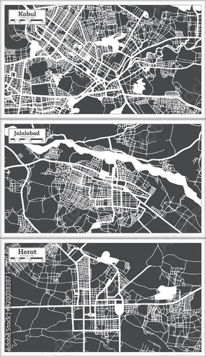 Naklejka premium Jalalabad, Herat and Kabul Afghanistan City Map Set.