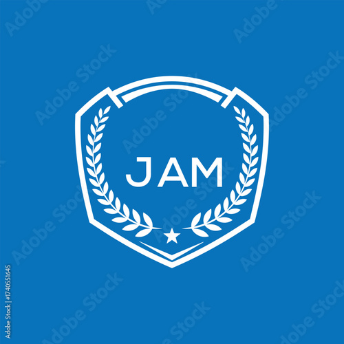 © Anwara, Fototapeta premium JAM Shield Logo Design JAM Minimal Laurel Wreath and Star Emblem for Sports Corporate JAM Club and Brand Ident.