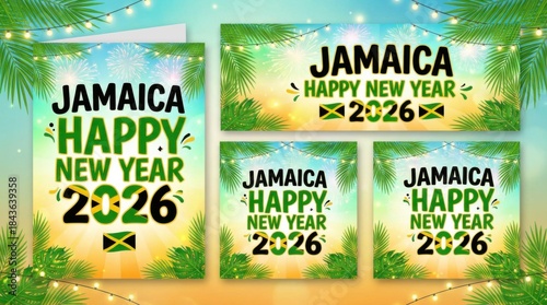 Naklejka premium jamaica happy new year 2026 poster set template with national flag colors