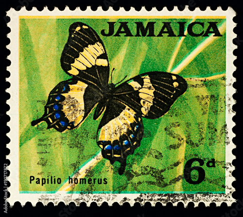 © Vic, Fototapeta premium Jamajski Giant Swallowtail na znaczku pocztowym