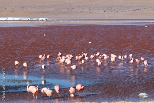 © Stefano, Fototapeta premium James's flamingos in Laguna Colorada, Bolivia