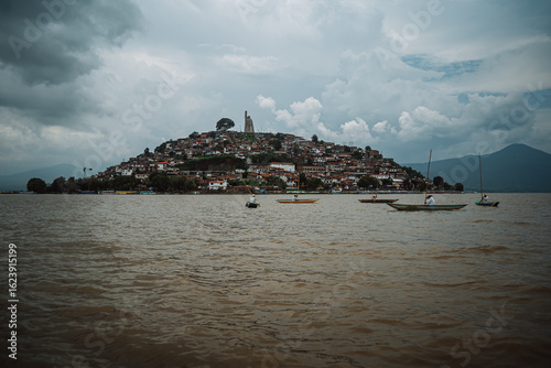 © Alexis, Naklejka premium Janitzio Island in Lake Patzcuaro, Mexico, with traditional fishermen fishing.