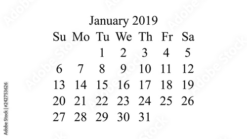 Obraz premium January 2019. Calendar 2019 vector. Simple design minimal 2019 calendar on...