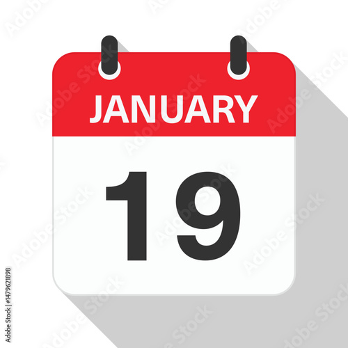 Fototapeta premium January 19 Daily Calendar. Red Theme on White Background