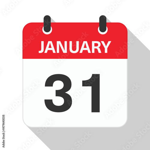 Fototapeta premium January 31 Daily Calendar. Red Theme on White Background