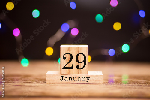 © Svetlana, Naklejka premium January 29th. Day 29 of month at center of dark background with garland bokeh. Winter time, year concept.