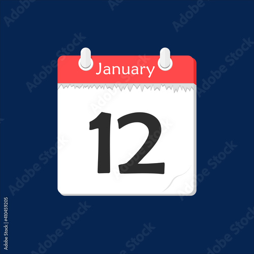 Fototapeta premium January 12. Vector flat daily calendar icon. Date and time, day, month. Holiday.