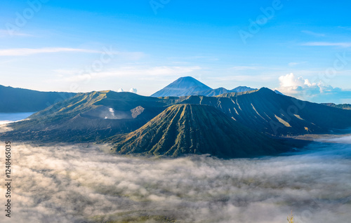 © sweetriver, Fototapeta premium January winter, Bromo Volcano sunrise morning scenery, at Surabaya, East Java, Indonesia