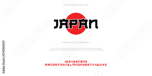 © Luke Project, Obraz premium Japan Modern minimal abstract alphabet fonts. Typography technology, electronic, movie, digital, music, future, logo creative font. vector illustration