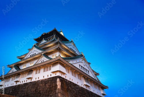 Fototapeta premium Japan.Osaka castle in the night. copy space in the sky.