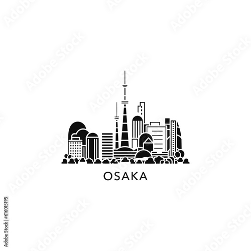 Fototapeta premium Japan Osaka city landscape skyline panorama abstract silhouette vector banner flat logo, thin line black and white isolated icon