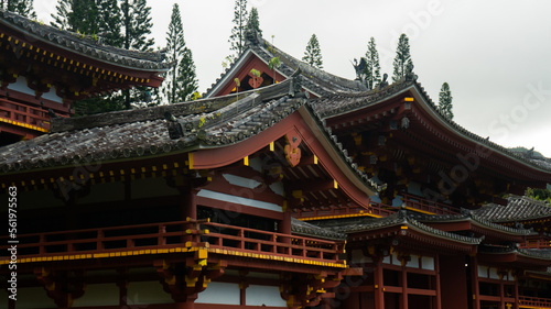 Naklejka premium Japan style roof for buddhist temple hawaii Byodo-In temple in valley of temples