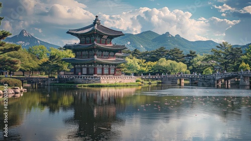 © SAIRA BANO, Fototapeta premium Japanese architecture of traditional temple in modern design, AI Generated