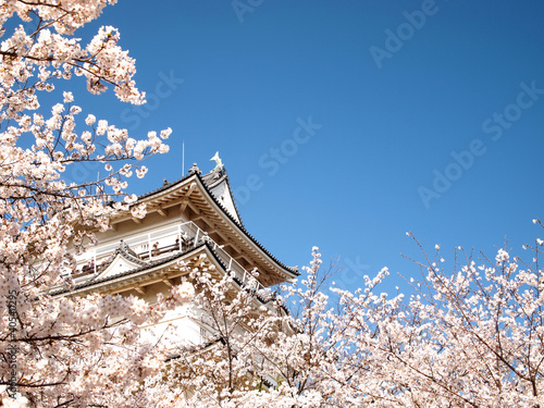 Fototapeta premium Japanese castle and cherry blossoms in full bloom