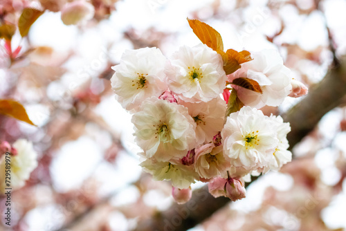 © Volodymyr, Fototapeta premium Japanese cherry blossoms. Delicate light pink sakura flowers on a tree in the garden