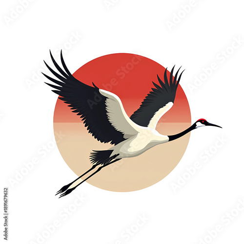 © Astellas, Fototapeta premium Japanese crane longevity icon