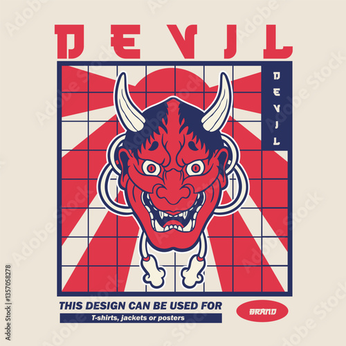 © Nehemialeo, Obraz premium Japanese Demon Oni Mask Logo Design vector illustration