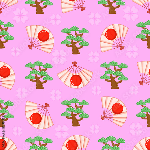 © Suthicha, Naklejka premium Japanese fan pattern with Japanese trees