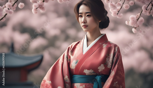 © Ebad, Fototapeta premium Japanese kemo dress wear by girl ai generates with background