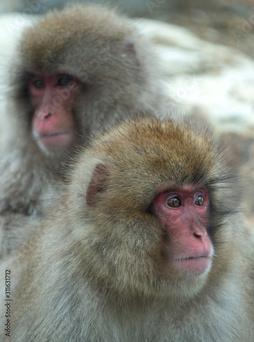 © Uryadnikov Sergey, Fototapeta premium Japanese macaque.Close up portrait. The Japanese macaque ( Scientific name: Macaca fuscata), also known as the snow monkey. Natural habitat, winter season.