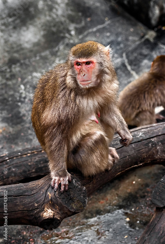 Fototapeta premium Japanese macaque female on the beam. Latin name - Macaca fuscata