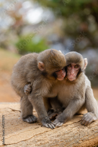 © exs, Fototapeta premium Japanese macaque in Arashiyama, Kyoto. Little monkeys are playing.