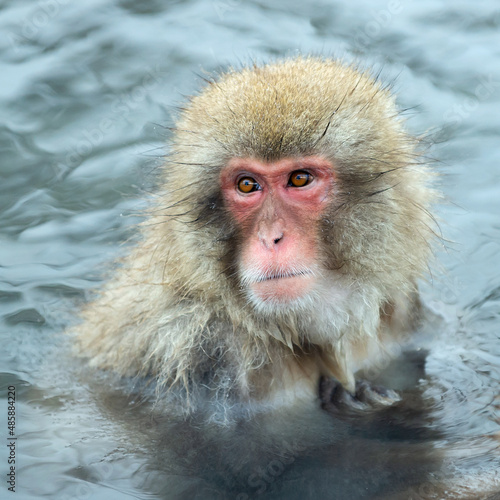 © Uryadnikov Sergey, Fototapeta premium Japanese macaque in the water of natural hot springs. The Japanese macaque ( Scientific name: Macaca fuscata), also known as the snow monkey. Natural habitat, winter season.