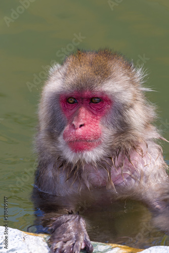 Fototapeta premium Japanese Macaque (Macaca fuscata) bathing in a steaming volcanic hot spring...