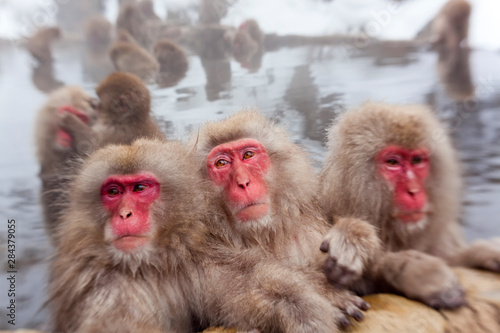Naklejka premium Japanese macaque (Macaca fuscata), Snow monkey, Joshin-etsu National Park,...