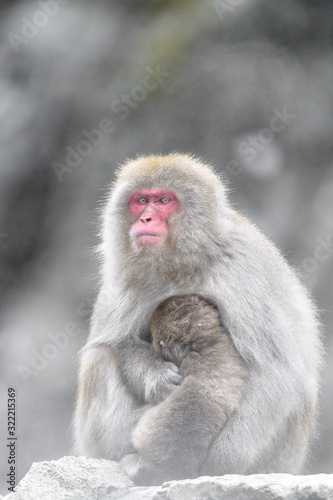 Fototapeta premium japanese macaque (snow monkey) mother cuddling with baby portrait