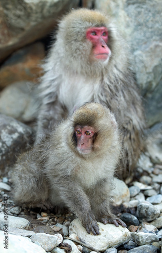 © Uryadnikov Sergey, Fototapeta premium Japanese macaques. Natural hot spring. Winter season. The Japanese macaque, Scientific name: Macaca fuscata, also known as the snow monkey.
